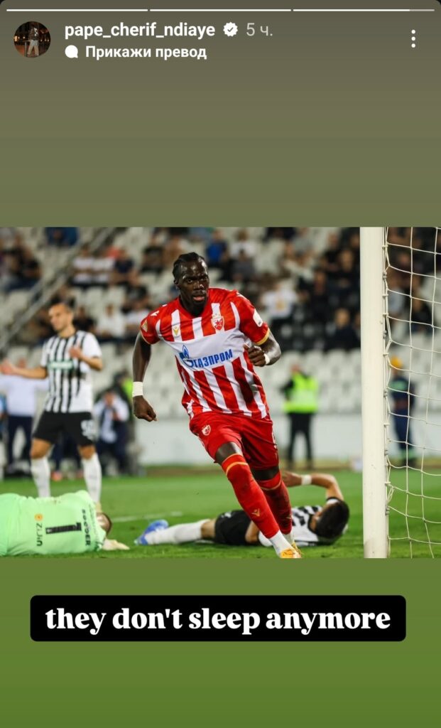 Ο πρώτος σκόρερ του πρωταθλήματος με 14 γκολ, ο Σενεγαλέζος Σερίν Εντζάι φαίνεται ότι δεν είχε κάτι καλύτερο να κάνει και παραμονές του μεγάλου ντέρμπι άρχισε να προκαλεί μέσω του Instagram, ανεβάζοντας φωτογραφίες από παλιά ντέρμπι με τον ίδιο να πανηγυρίζει, αφού έχει σκοράρει και στις τέσσερις φορές που έχει πετύχει την Παρτίζαν: «Ο εφιάλτης τους», «Δεν κοιμούνται πλέον τα βράδια».