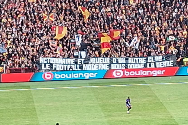 «Μέτοχος και παίκτης διαφορετικής ομάδας. Το μοντέρνο ποδόσφαιρο μας προκαλεί εμετό» ήταν το τεράστιο πανό που κρέμασαν φόρα παρτίδα στην κεντρική εξέδρα ώστε να φαίνεται σε κάθε τηλεοπτικό πλάνο, οι οπαδοί της Λανς στο επόμενο εντός έδρας παιχνίδι, θέλοντας να κάνουν γνωστά τα συναισθήματά τους.