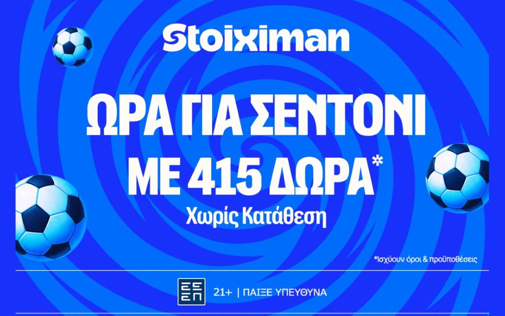 Προσφορά* γνωριμίας από τη Stoiximan με 415* Δώρα* χωρίς κατάθεση*!