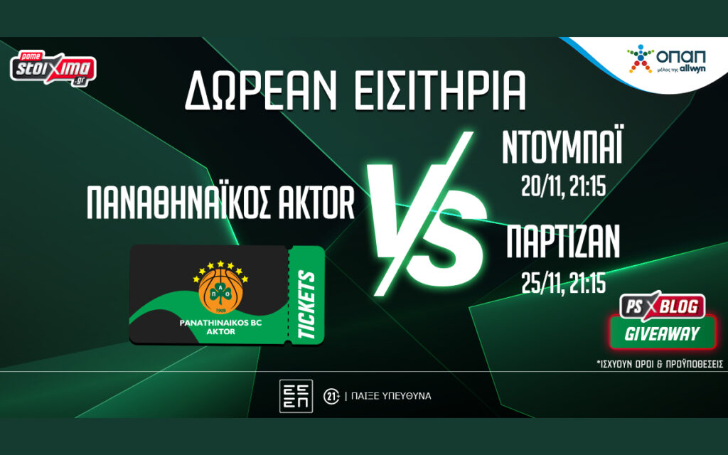 - 2 τυχεροί κερδίζουν από 1 διπλό εισιτήριο για το Παναθηναϊκός AKTOR-Ντουμπάι (20/11, 21:15)