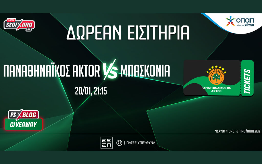 Με τον συναρπαστικό διαγωνισμό* του PS Blog απολαμβάνεις το παιχνίδι Παναθηναϊκός AKTOR-Μπασκόνια στο “Telekom Center Athens”.