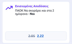 Εννοείται πως τα ειδικά παικτών δεν θα μπορούσαν να λείψουν από τις ενισχυμένες. Με τον σέντερ φορ Γιακουμάκη να παίρνει τα πάνω του, σκοράροντας και στο πιο πρόσφατο παιχνίδι του ΠΑΟΚ, το να «ξαναματώσει» τα δίχτυα ο Κρητικός και η ομάδα του να κερδίσει, προσφέρεται σε απόδοση 3.30 με σούπερ ενίσχυση της Stoiximan.