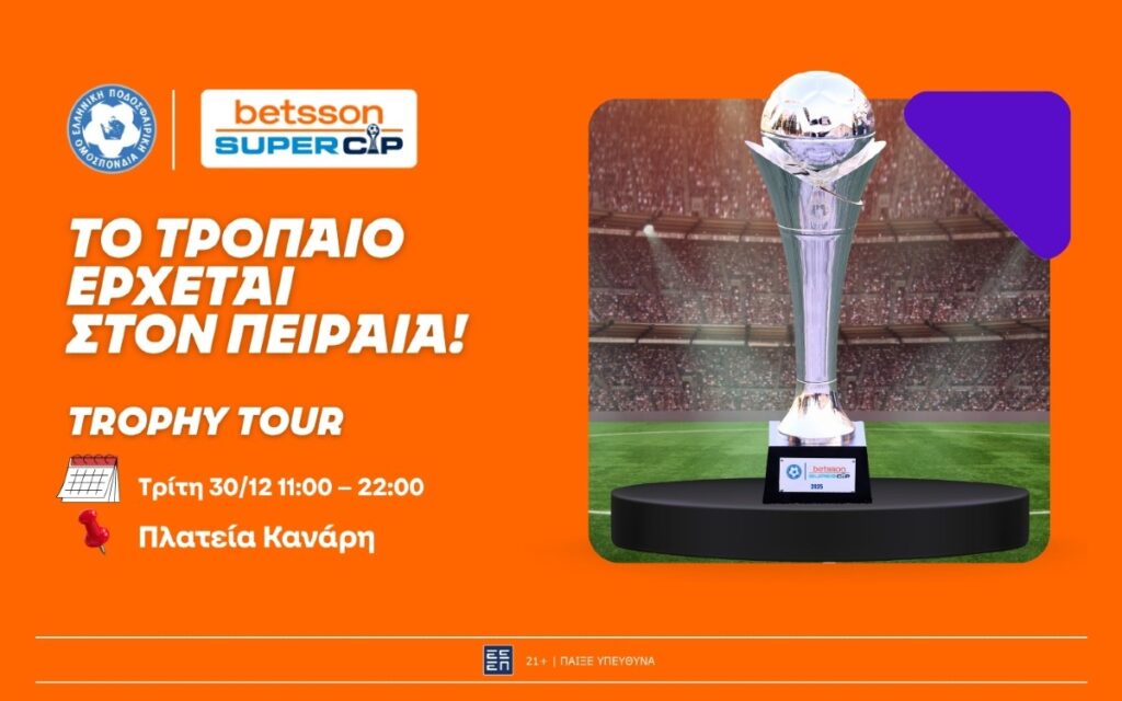 Η πρώτη στάση του Trophy Tour θα πραγματοποιηθεί στον Πειραιά, την Τρίτη 30 Δεκεμβρίου, από τις 11:00 έως τις 22:00, μέσα από ένα ειδικά διαμορφωμένο Betsson Fan Zone, αφιερωμένο στο Betsson Super Cup.