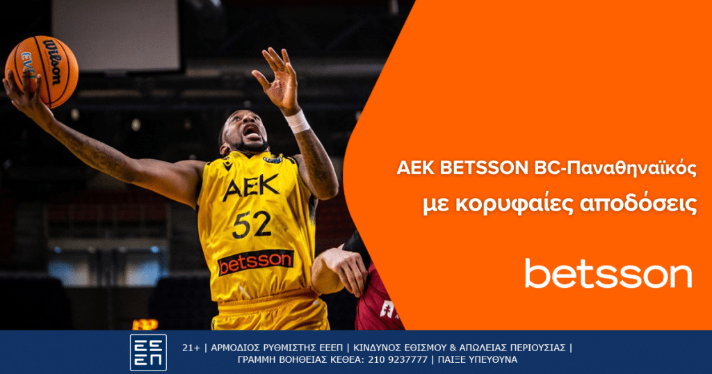 Συγκεκριμένα, ο άσος της ΑΕΚ BETSSON BC προσφέρεται στο 6,50** και το διπλό του Παναθηναϊκού δίνεται με χάντικαπ 13,5 πόντων στο 1,88** στην πλατφόρμα της Betsson. Να σημειώσουμε πως η Betsson είναι η μεγάλη χορηγός της ομάδας μπάσκετ της ΑΕΚ.