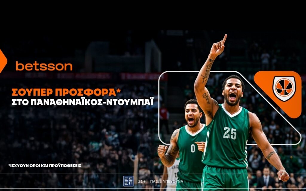 Η Betsson παρουσιάζει το Παναθηναϊκός–Ντουμπάι με σούπερ προσφορά* που δίνει ξεχωριστό ενδιαφέρον στη βραδιά της Ευρωλίγκας.
