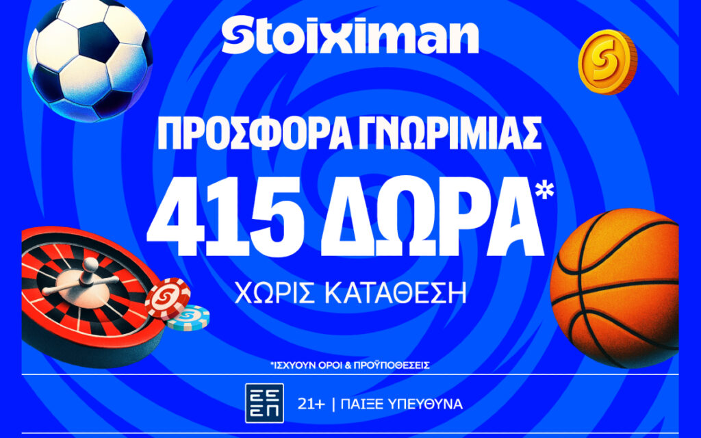 Προσφορά* γνωριμίας από τη Stoiximan με 415* Δώρα* χωρίς κατάθεση*!
