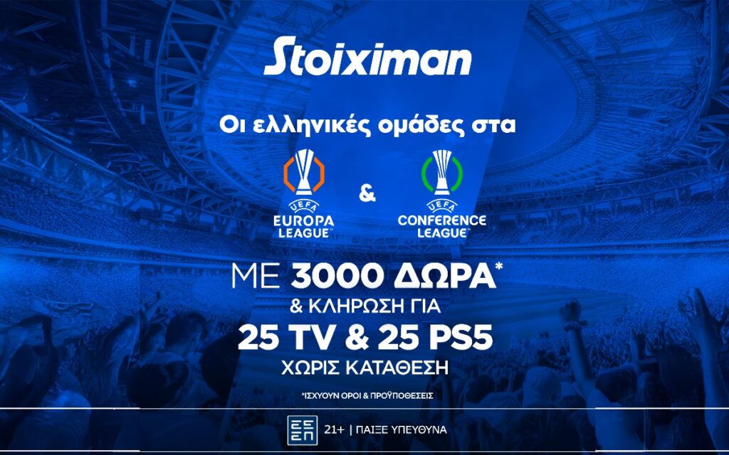 Προσφορά* γνωριμίας από τη Stoiximan με 3000 δώρα* χωρίς κατάθεση* και κλήρωση για ΤV 65’’ και PS5!