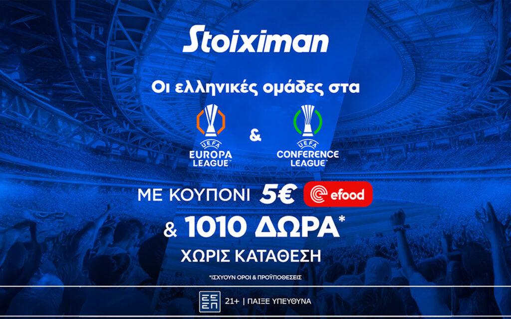 Προσφορά* γνωριμίας από τη Stoiximan με 1010 δώρα* και κουπόνι efood χωρίς κατάθεση*!
